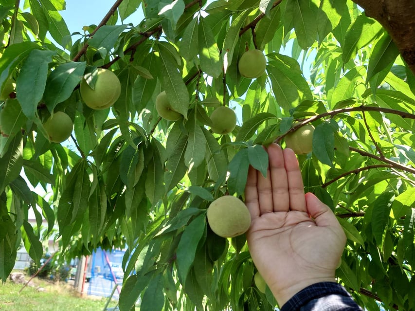 例年より早い梅雨明けで水不足も心配されましたが、今週は戻り梅雨☔のような天候で一安心です。 ももは水不足だと実が肥大せずに小玉傾向になりやすく、かといって水やりをすると糖度が上がってこないので管理が難しい果物です💦...