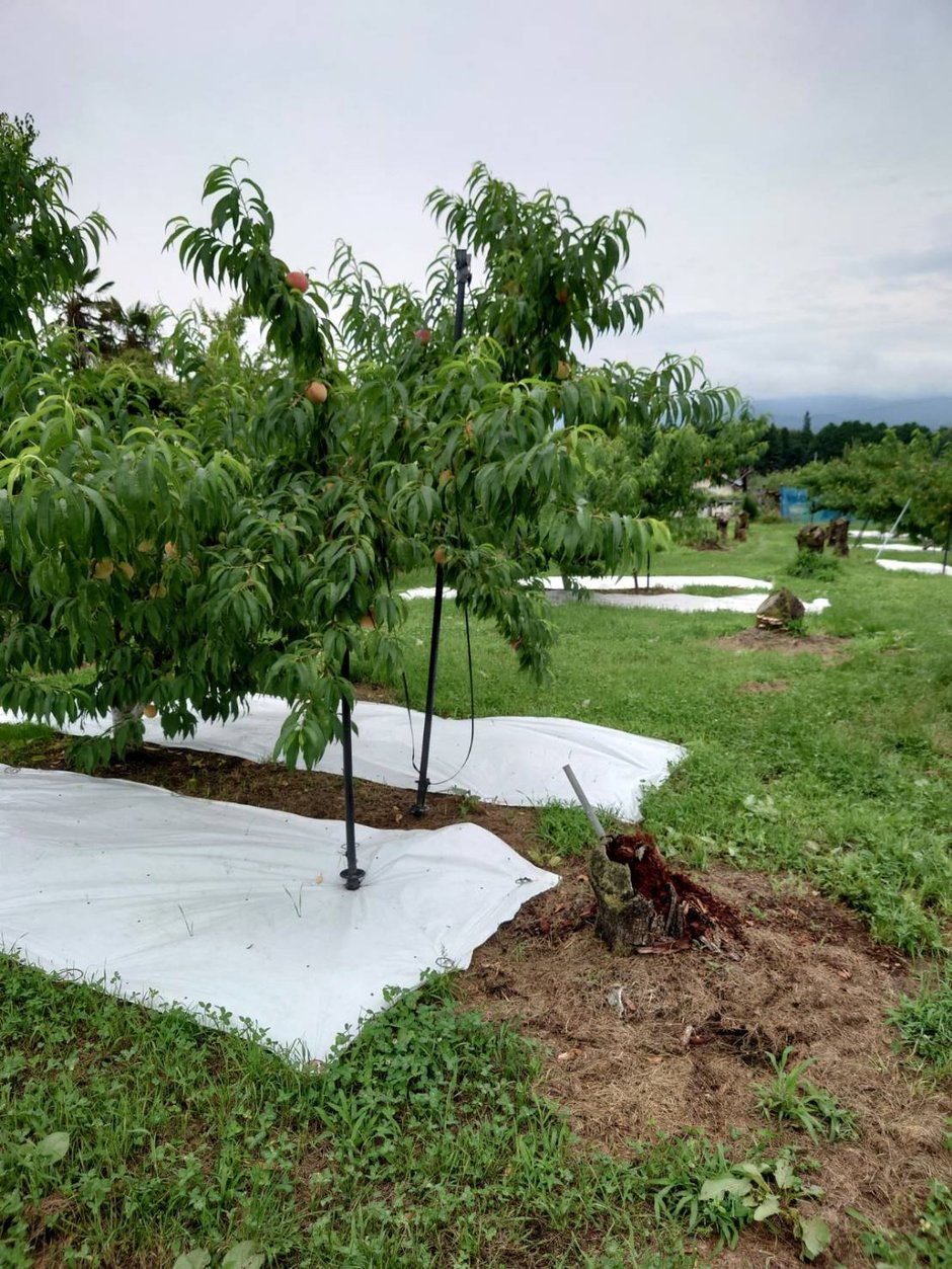 猛暑が続くと思いきや7月に入ってまるで梅雨に戻ったかのような空模様が続いています☔ 6月下旬の猛暑が続くと水不足が心配でしたが、7月に入りこれだけ雨天や曇天が続くと今度はももの着色が進むか心配になってきました💦 そこで少しでも着色が進むようにと樹の下に白い反射シートを敷きました。...