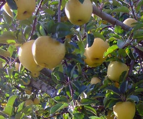 「ゴールデンデリシャス」に「千秋」を交配してできた黄色りんごです。甘みと酸味があり、味がとても濃厚でシャキシャキ感のあるりんごです。保存性に優れ、上手に保存するとお正月くらいまで楽しめます。