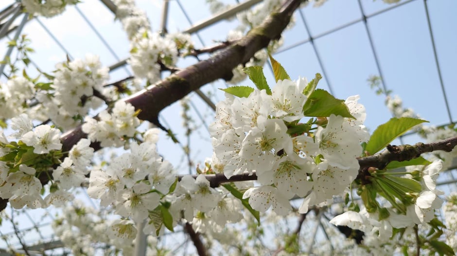 こんばんは🌙 まだ4月だというのに夏日が続き、人も果物の花も早速ばて気味です💦 先週からぽつぽつと咲き始めていたさくらんぼの花が今週ついに満開となりました🌸 さくらんぼは名前の通り、桜の仲間のため花の形は桜にそっくりです。 花びらの色は桜と違って真っ白な花びらで、この時期のさくらんぼハウスは一面純白な花で囲まれます✨...