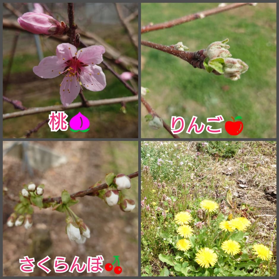 こんにちは。まるもと農園です🍎 4月に入り、果樹の花もだいぶ蕾が膨らんできました! 足元を見るとたんぽぽなど春の草花がきれいな絨毯を作っています🌸 今年は1月、2月と暖冬傾向で果樹の開花も早いことが予想されていました。 しかし、3月が雨や低温の日が多く、生育にブレーキがかかりました。...